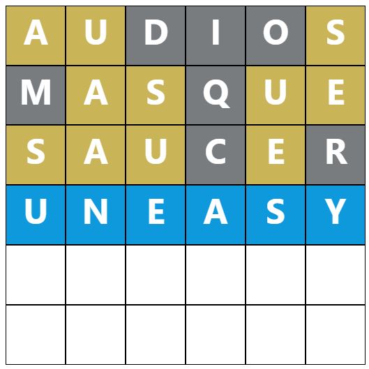 When you make a guess, the colours of the tiles will change, indicating whether the letters you guessed are in the answer and whether you have correctly placed them in the word. This game’s colours are grey, yellow, and blue, which have most likely been changed to distinguish itself further from the original Wordle.