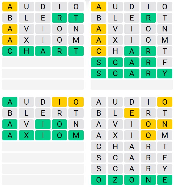 Let us know how many attempts it took you to guess today’s Quordle below.