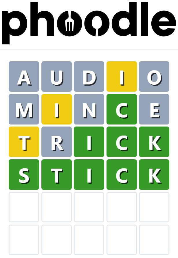 Phoodle is another Wordle-inspired game we have found, which is another food-related game. Players need to guess the five-letter food-related term, which can be anything from appliances to famous chefs and more.