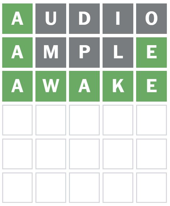 Here is how I managed to solve Wordle 1708 in three guesses today. I guessed the word ‘AUDIO’ first, which is my usual starter word.