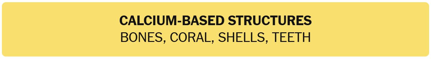 - CAlCIUM-BASES STRUCTURES – BONES, CORAL, SHELLS, TEETH