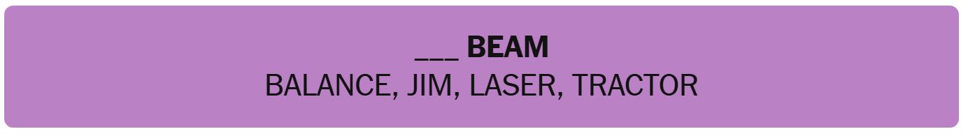 - ___ BEAM – BALANCE, JIM, LASER, TRACTOR