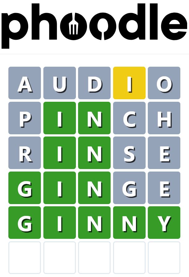Phoodle is another Wordle-inspired game we have found, which is another food-related game. Players need to guess the five-letter food-related term, which can be anything from appliances to famous chefs and more.