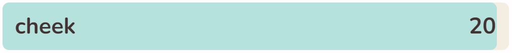 - The twentieth word in the list today is ‘CHEEK‘.