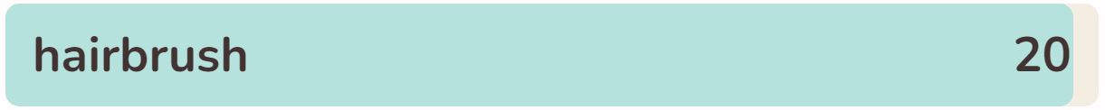 - The twentieth word in the list today is ‘HAIRBRUSH‘.