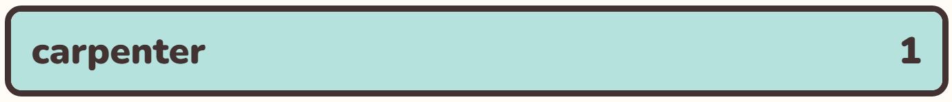 • The second word in the list today (the closest word to the answer) is ‘CARPENTRY‘.