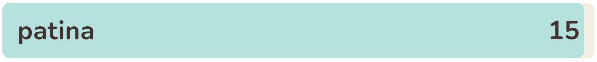 - The fifteenth word in the list today is ‘PATINA‘.