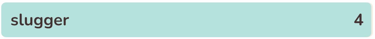 - The fourth word in the list today is ‘SLUGGER’.
