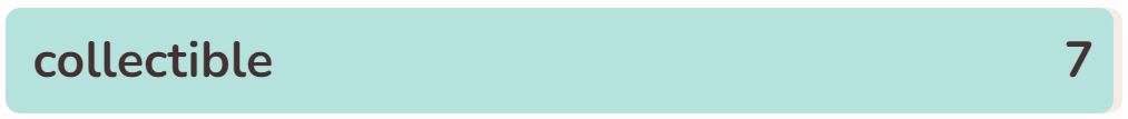 - The seventh word in the list today is ‘COLLECTIBLE‘.
