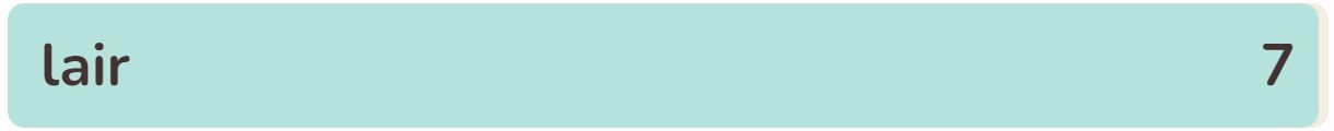 - The seventh word in the list today is ‘LAIR‘.