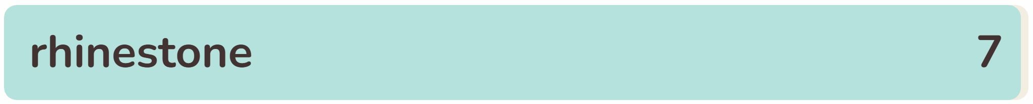 - The seventh word in the list today is ‘RHINESTONE‘.
