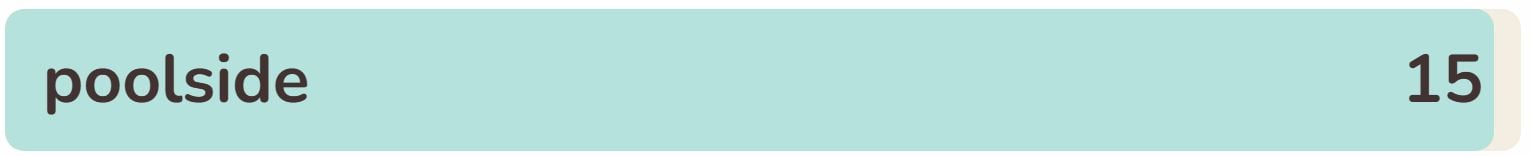 - The fifteenth word in the list today is ‘POOLSIDE‘.