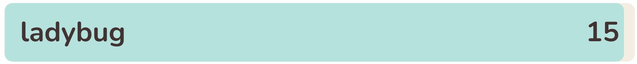 - The fifteenth word in the list today is ‘LADYBUG‘.
