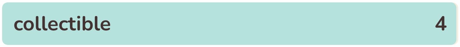 • The fourth word in the list today is ‘COLLECTIBLE’.
