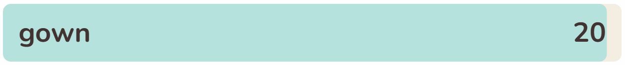 - The twentieth word in the list today is ‘GOWN‘.