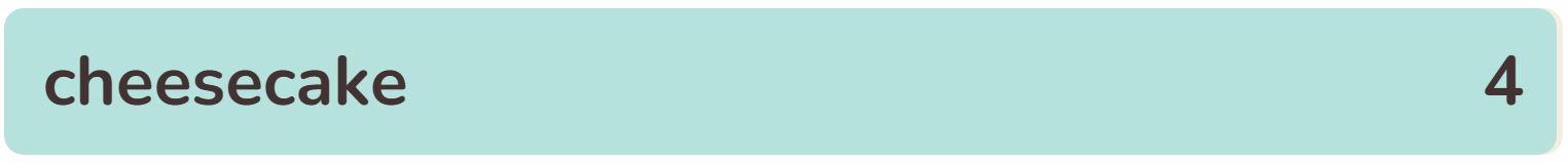 - The fourth word in the list today is ‘CHEESECAKE’.
