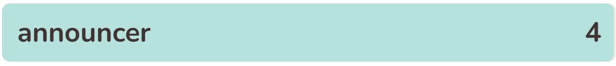 - The fourth word in the list today is ‘ANNOUNCER’.