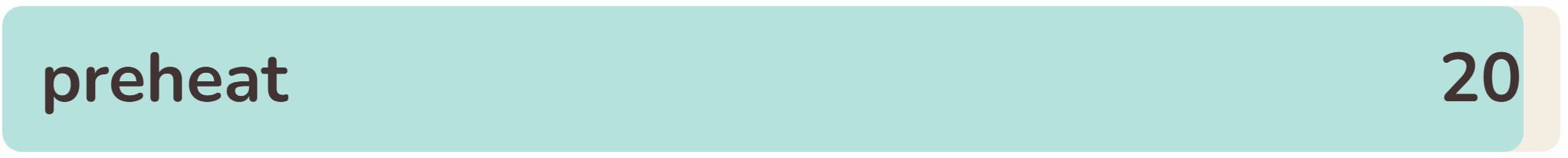 - The twentieth word in the list today is ‘PREHEAT‘.