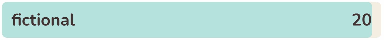 - The twentieth word in the list today is ‘FICTIONAL‘.