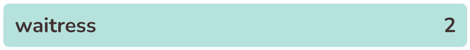 - The second word in the list today (the closest word to the answer) is ‘WAITRESS‘.