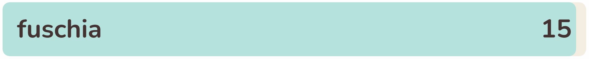 - The fifteenth word in the list today is ‘FUSCHIA‘.