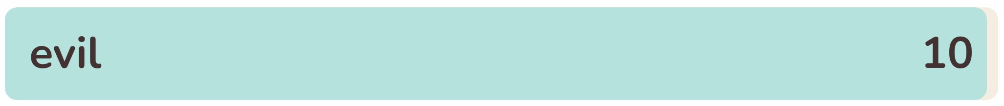 - The tenth word in the list today is ‘EVIL‘.