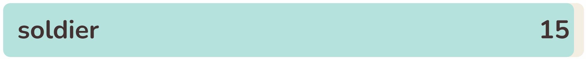 - The fifteenth word in the list today is ‘SOLDIER‘.