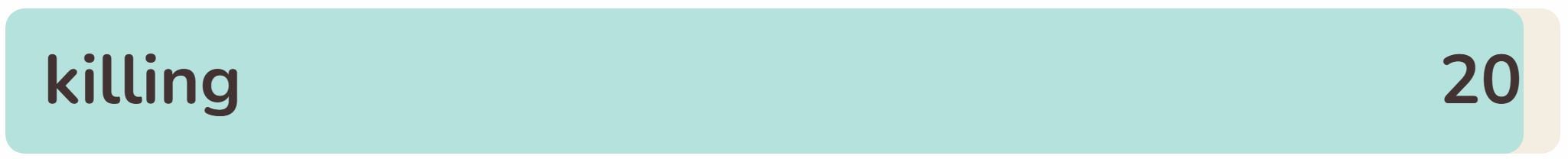 - The twentieth word in the list today is ‘KILLING‘.