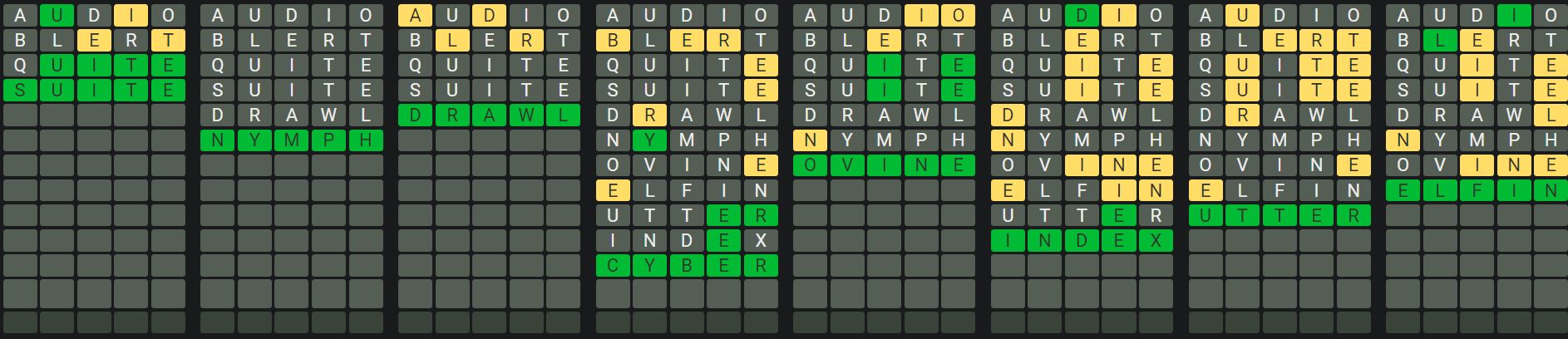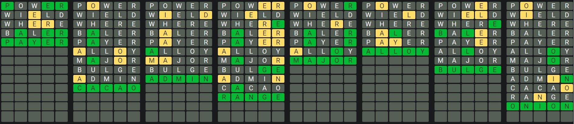 The Sequence Mode is similar to the original Octordle game with the following changes.