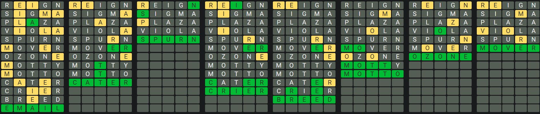 The Sequence Mode is similar to the original Octordle game with the following changes.