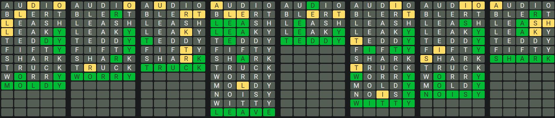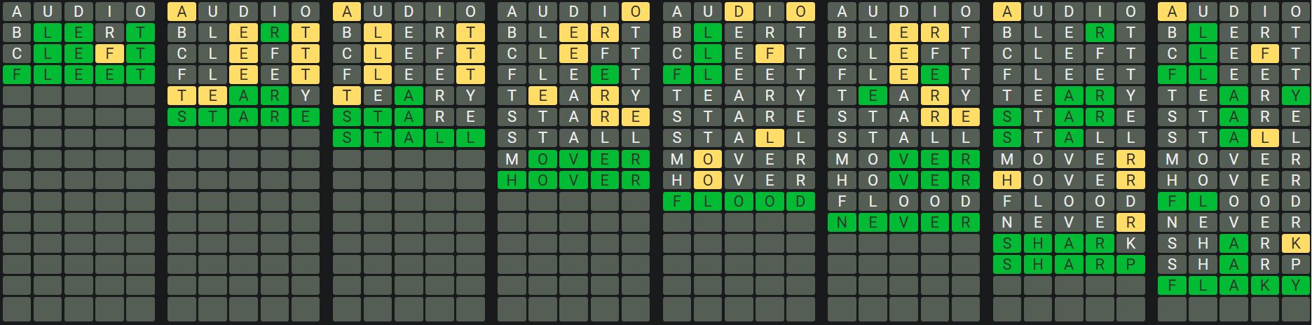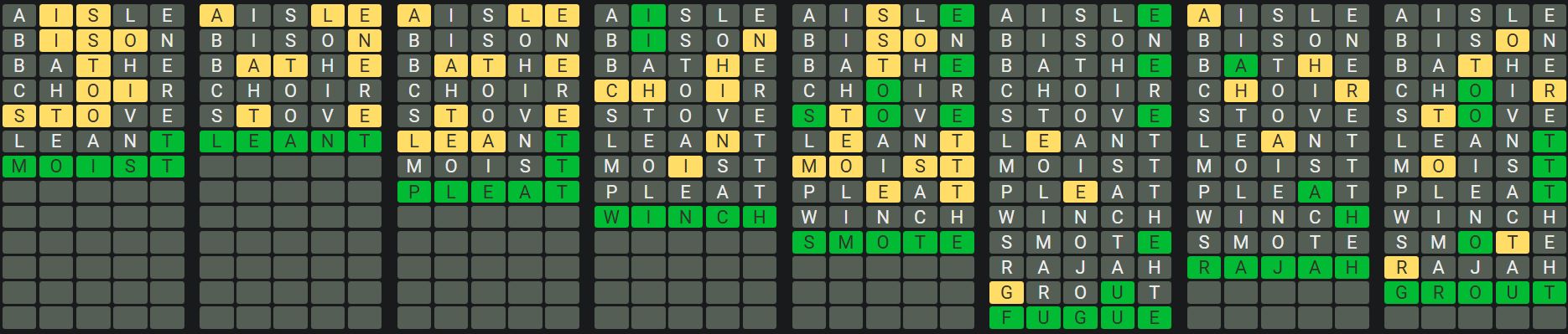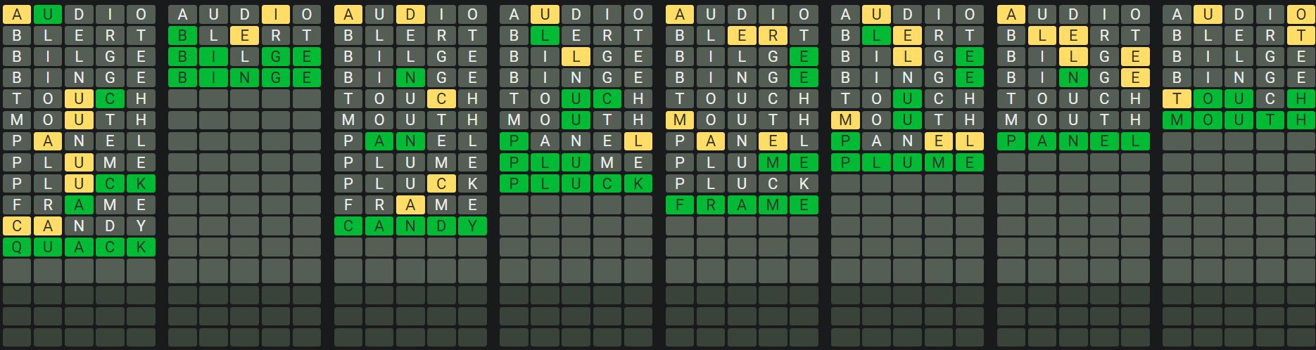 The Sequence Mode is similar to the original Octordle game with the following changes.
