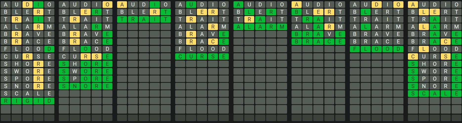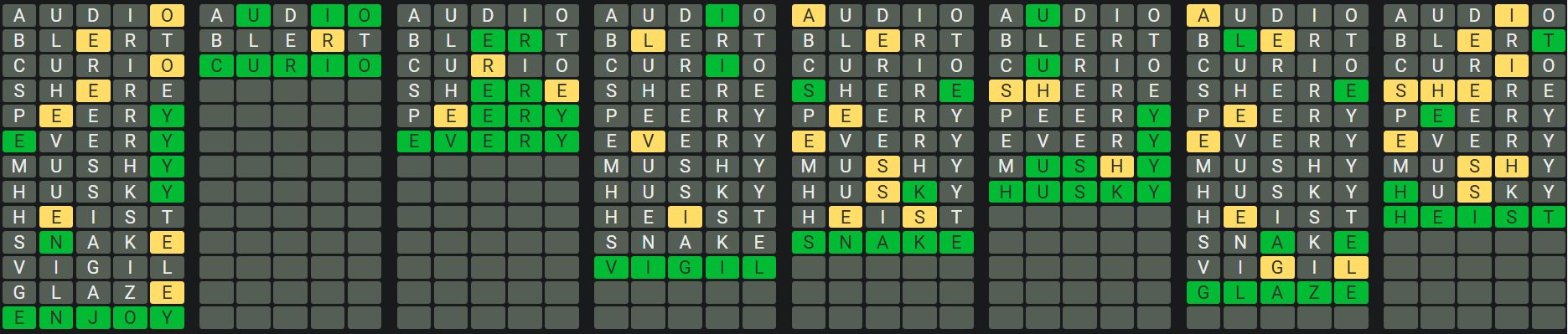 The Sequence Mode is similar to the original Octordle game with the following changes.