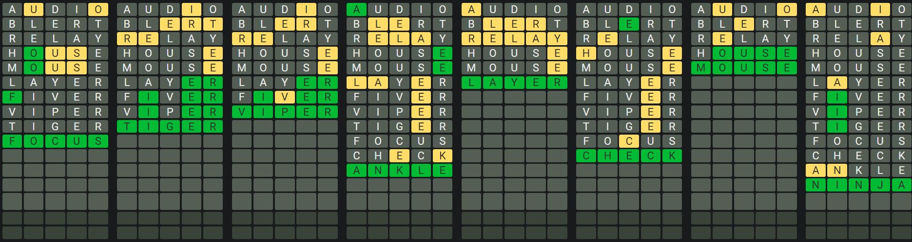 - Only one unsolved word is visible at a time. Once you solve a word, the next board is unlocked.