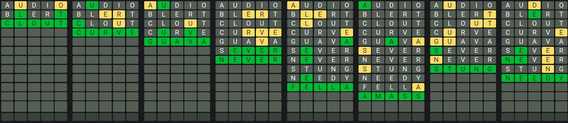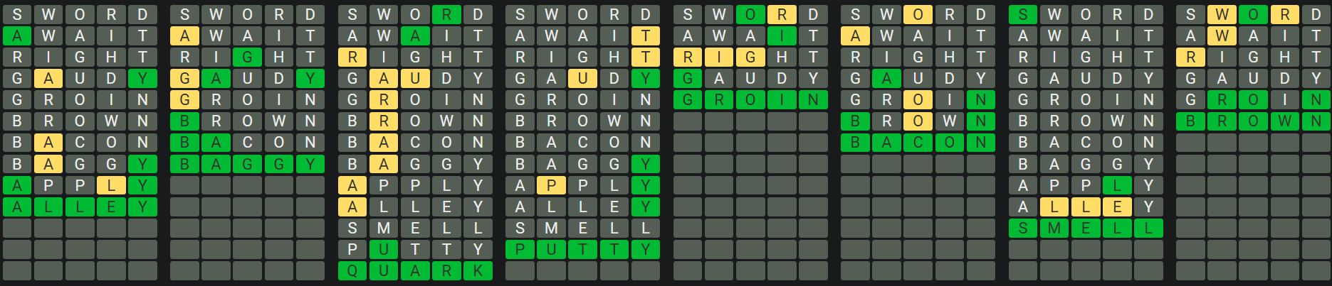 The Sequence Mode is similar to the original Octordle game with the following changes.