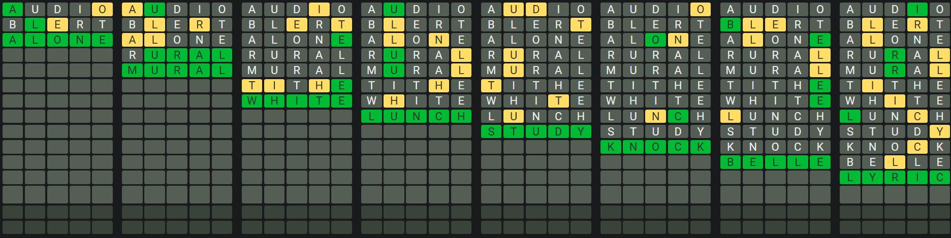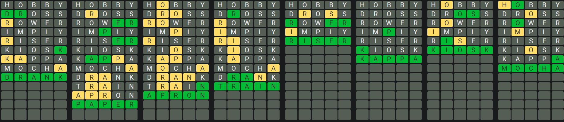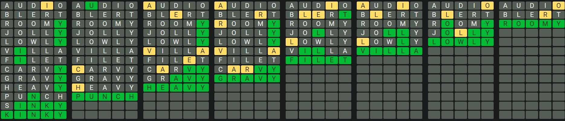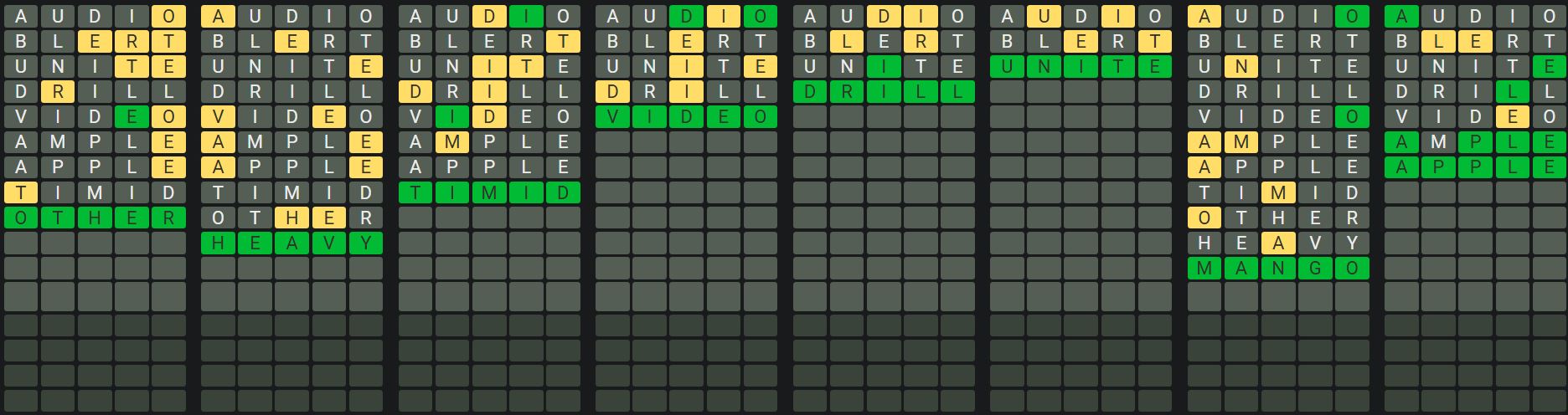 The Sequence Mode is similar to the original Octordle game with the following changes.
