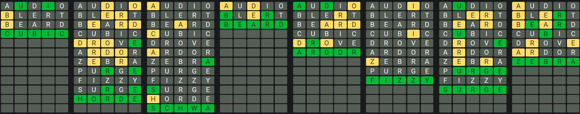 The Sequence Mode is similar to the original Octordle game with the following changes.