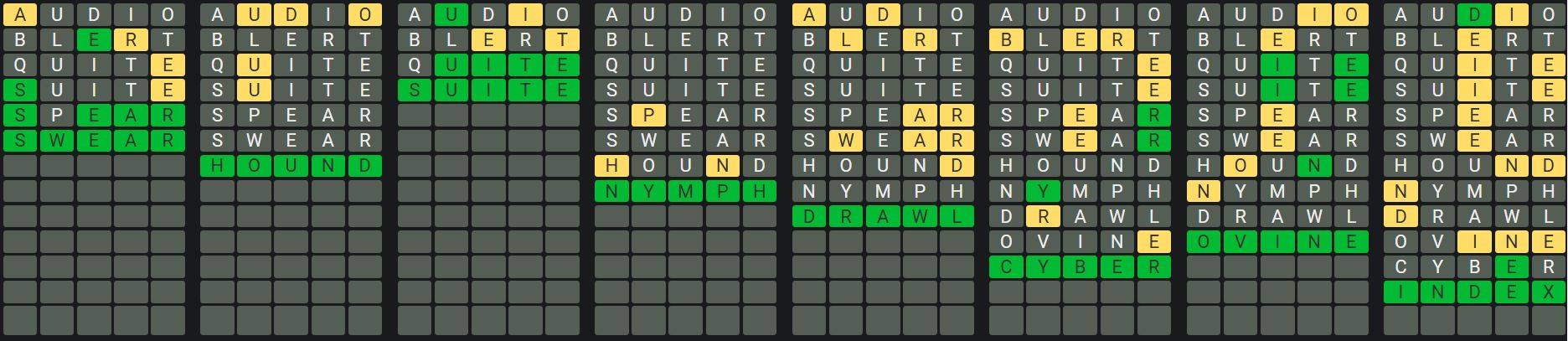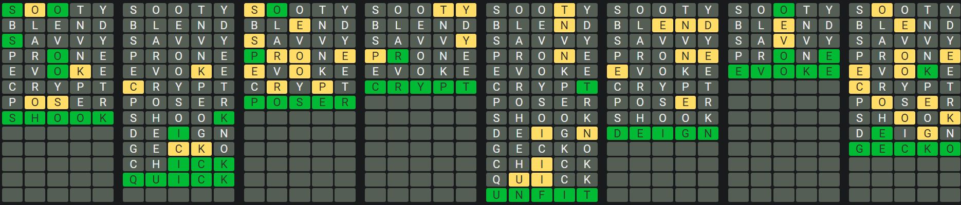 The Sequence Mode is similar to the original Octordle game with the following changes.