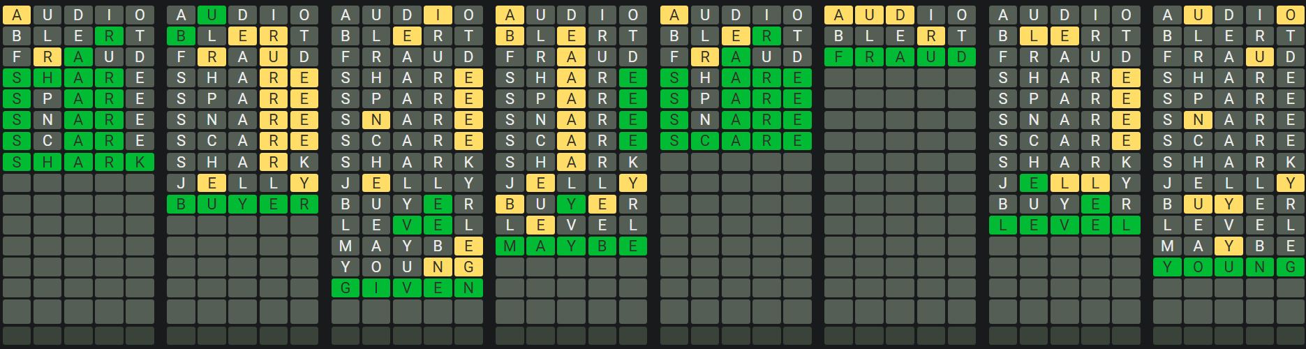 The Sequence Mode is similar to the original Octordle game with the following changes.