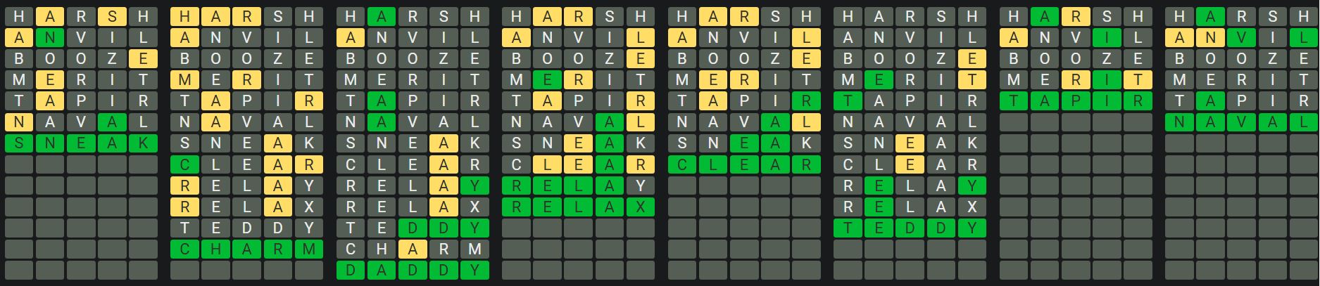 - Only one unsolved word is visible at a time. Once you solve a word, the next board is unlocked.