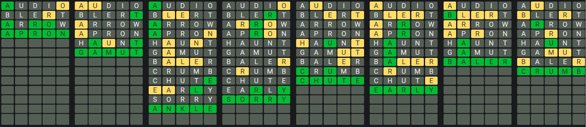 The Sequence Mode is similar to the original Octordle game with the following changes.