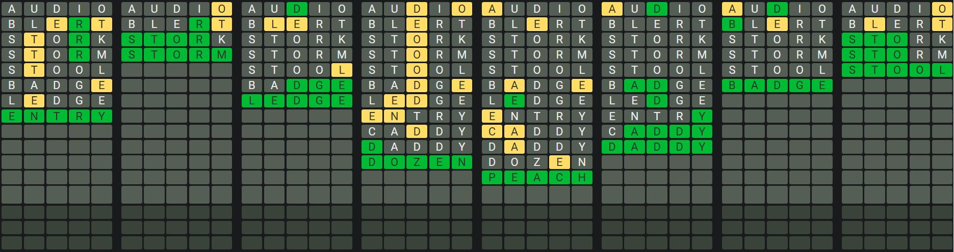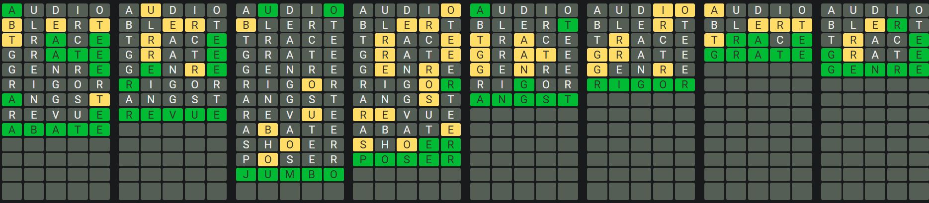 The Sequence Mode is similar to the original Octordle game with the following changes.