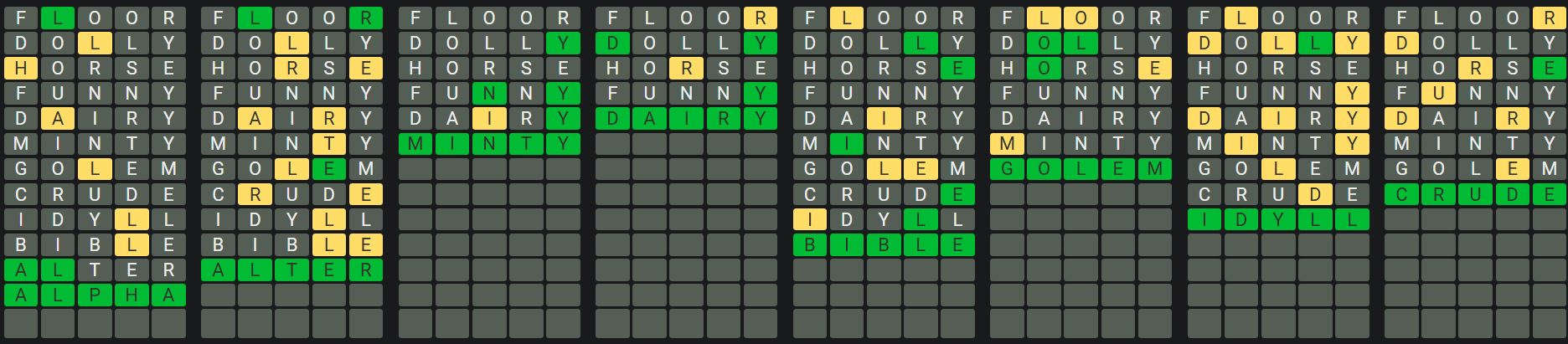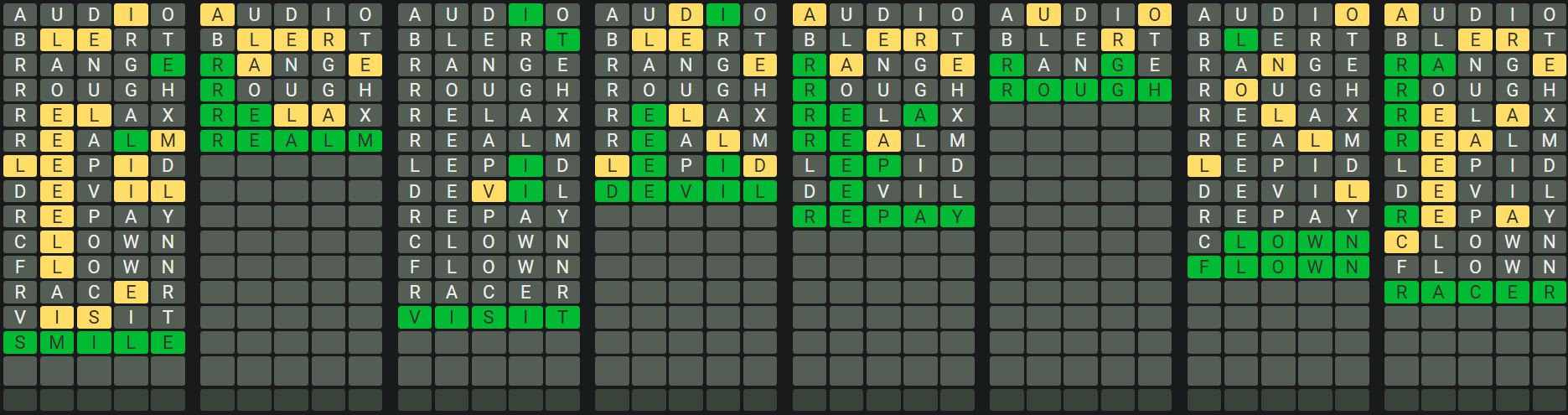 - Only one unsolved word is visible at a time. Once you solve a word, the next board is unlocked.