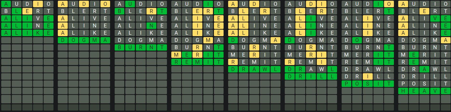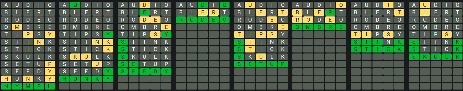 The Sequence Mode is similar to the original Octordle game with the following changes.