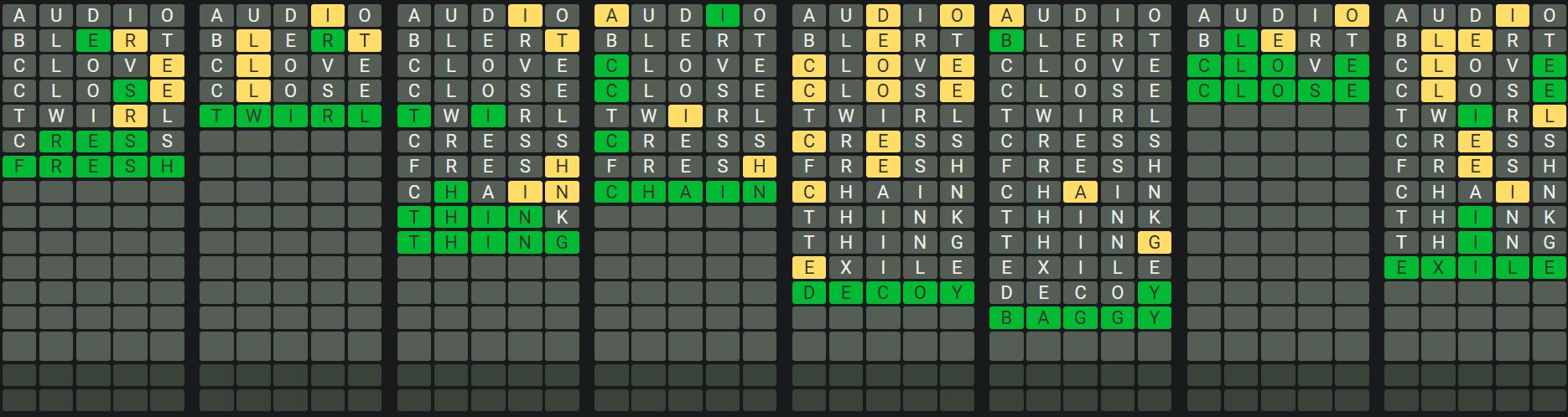 - Only one unsolved word is visible at a time. Once you solve a word, the next board is unlocked.