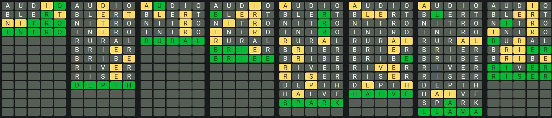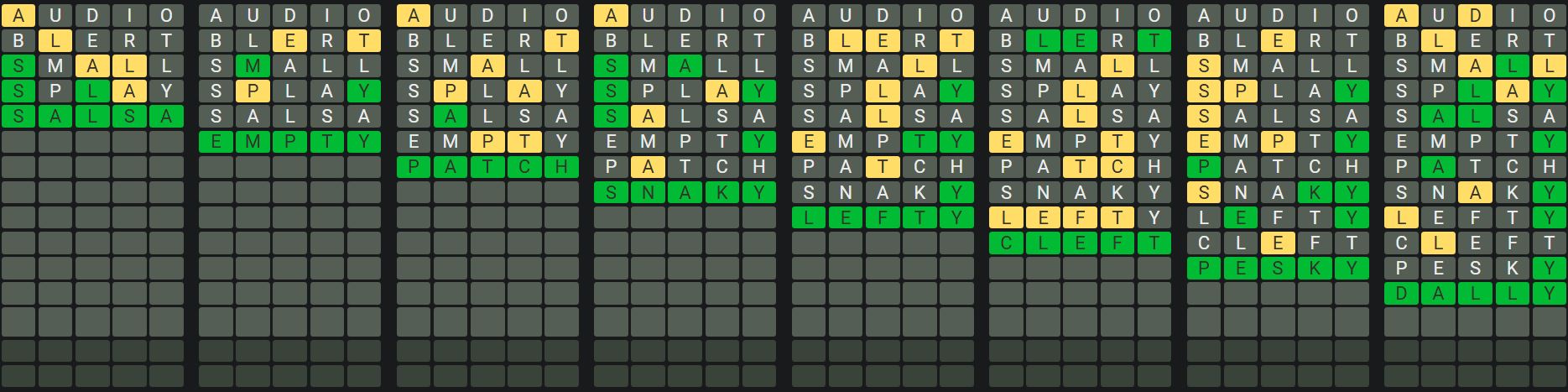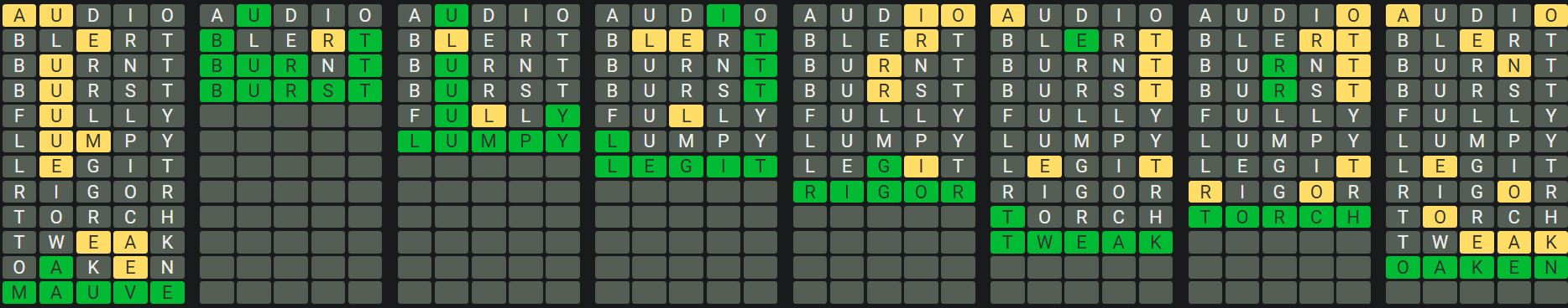 The Sequence Mode is similar to the original Octordle game with the following changes.