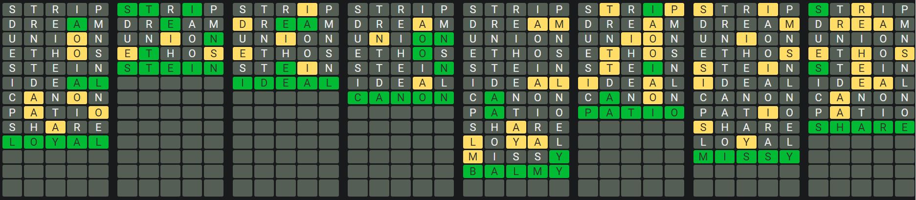 Click here for the hints and the answers to Octordle 1036!