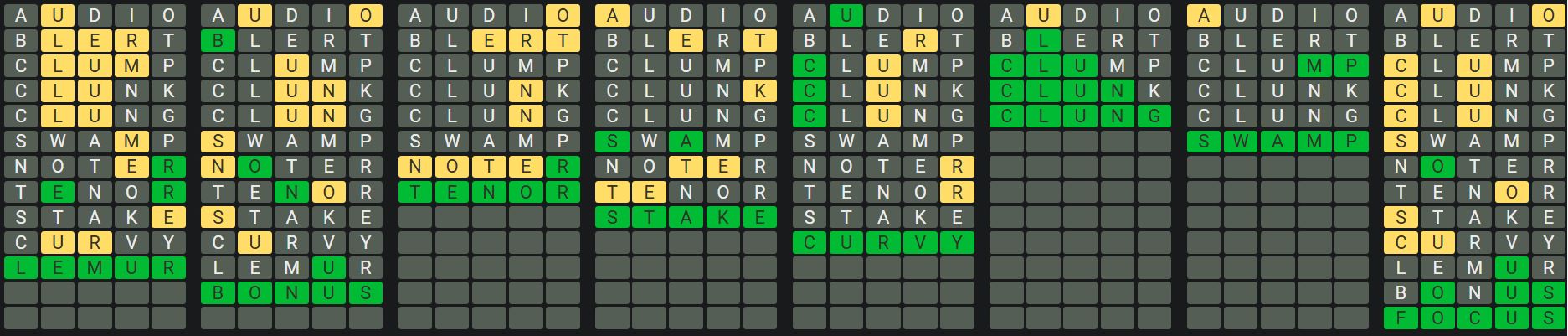 The Sequence Mode is similar to the original Octordle game with the following changes.
