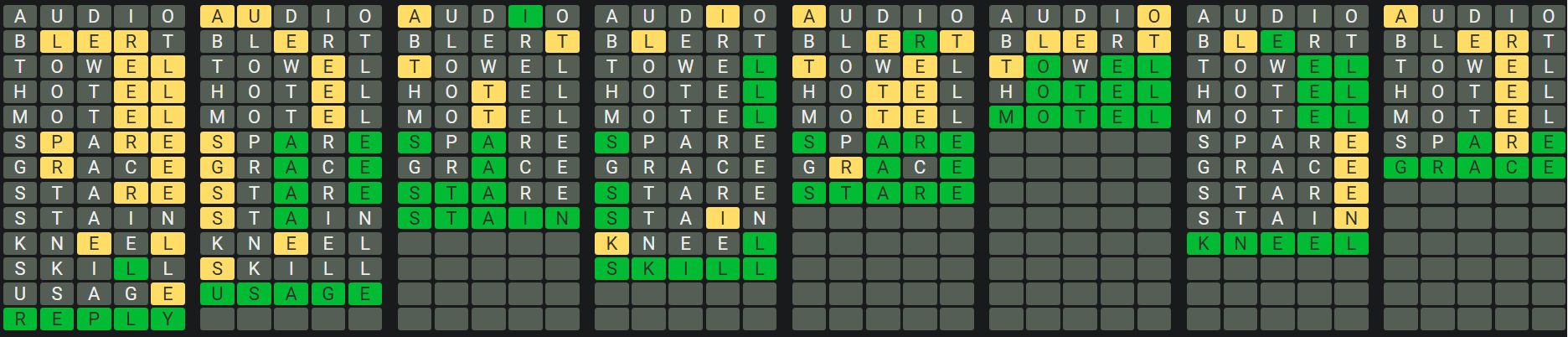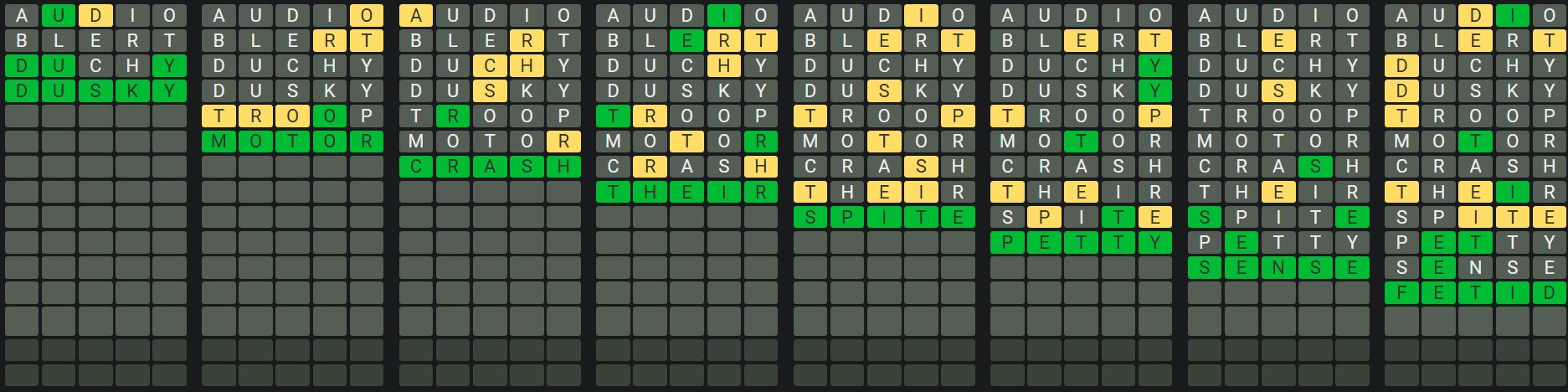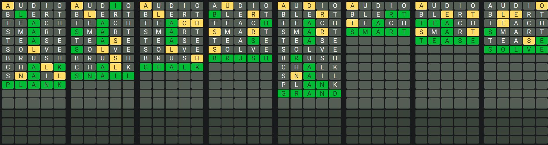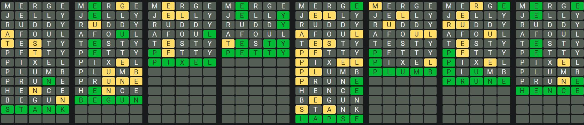 The Sequence Mode is similar to the original Octordle game with the following changes.
