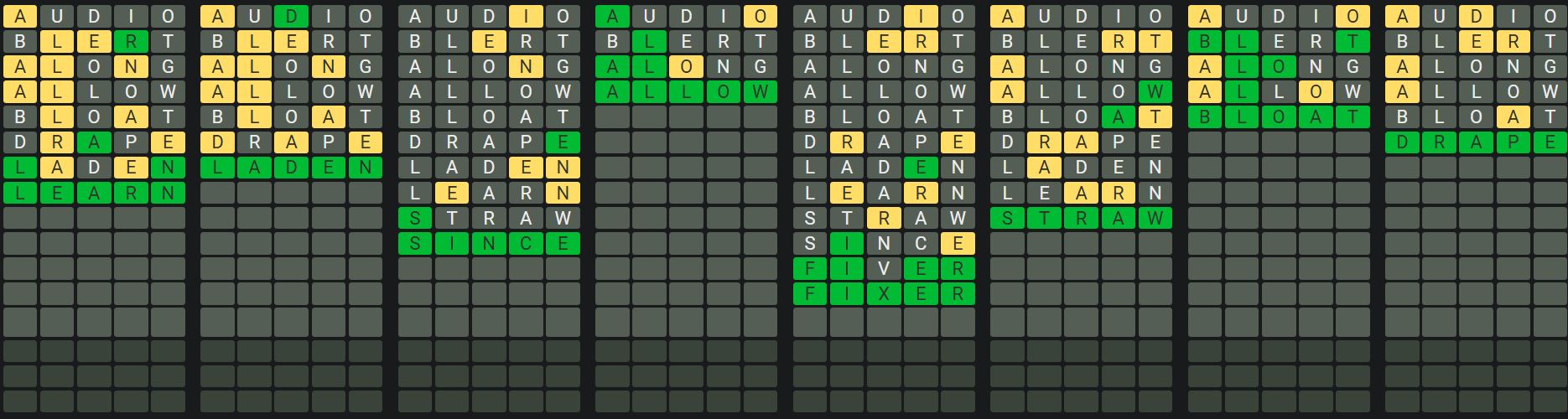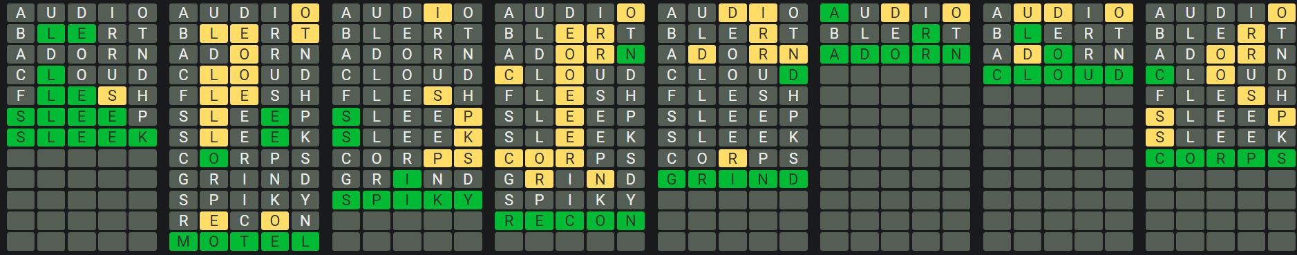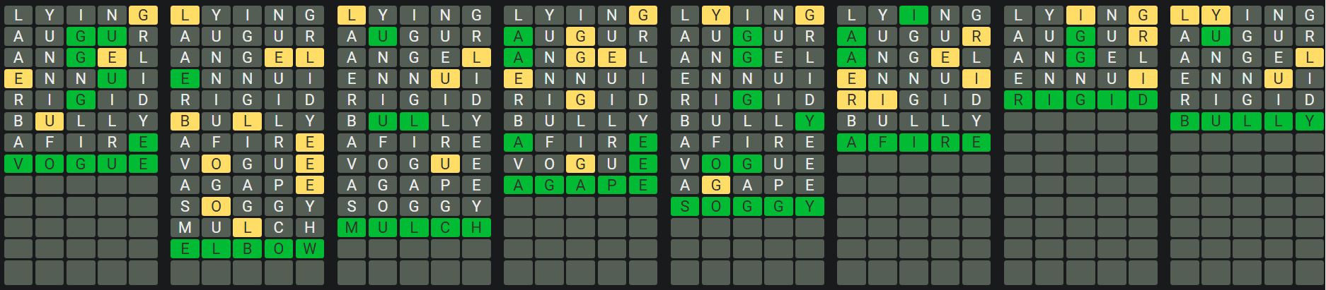 The Sequence Mode is similar to the original Octordle game with the following changes.