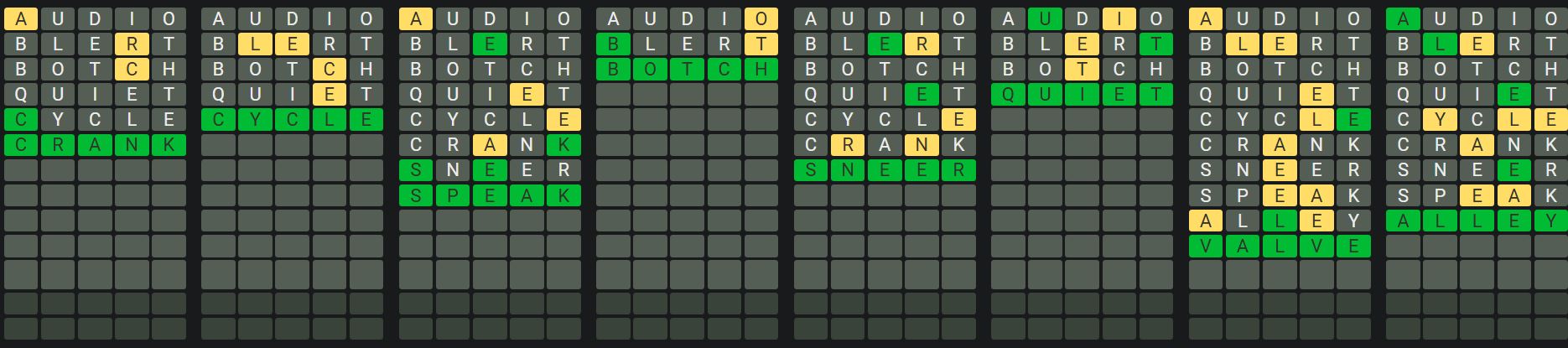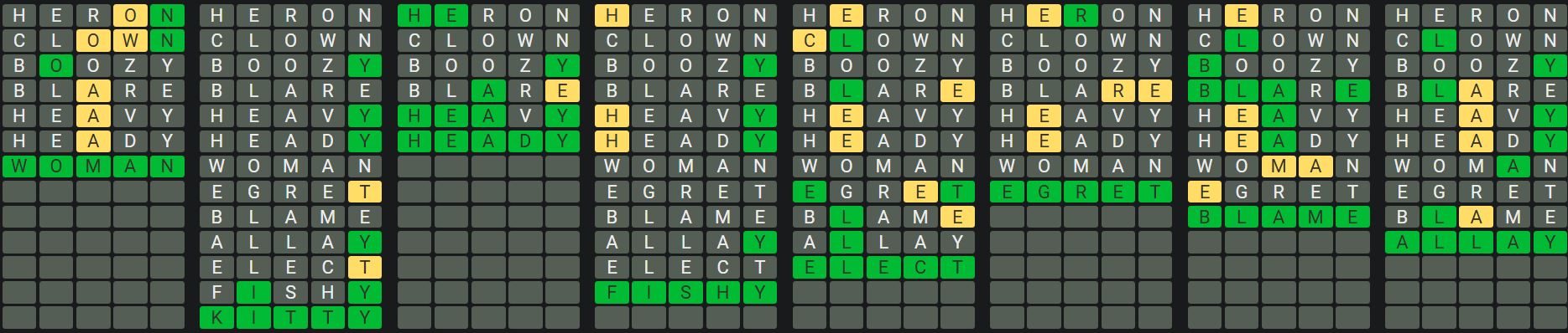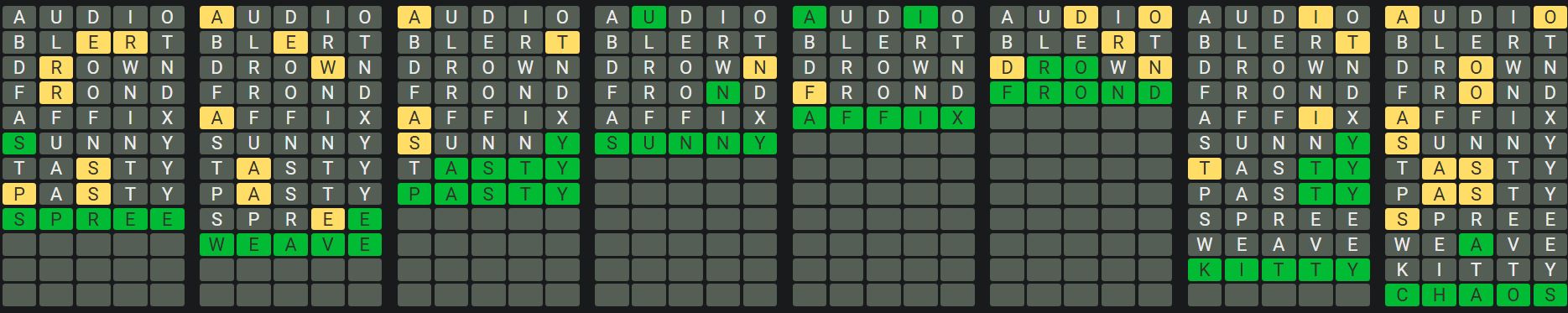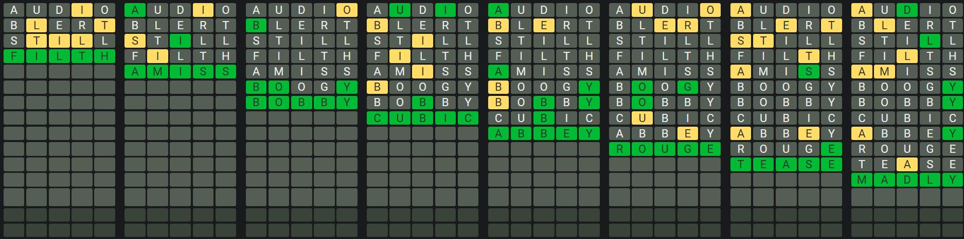 The Sequence Mode is similar to the original Octordle game with the following changes.